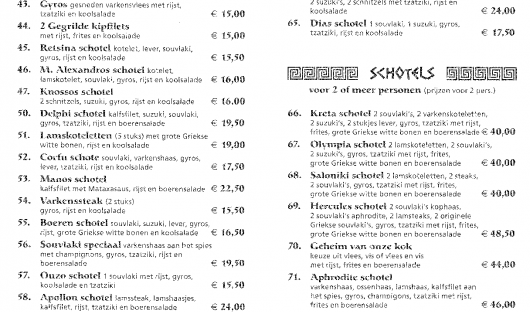 Juliano en Akilina Veliu met hun personeel heten U van harte welkom in het Grieks specialiteiten restaurant Saloniki. Naast de mogelijkheden om à la carte te dineren in een gezellige sfeer, bieden wij ook speciale arrangementen voor groepen en partijen. Grieks, maar wel onderscheidend door de keuze voor de hedendaagse Griekse keuken. Een lunch of diner in écht Griekse stijl betekent lang tafelen en genieten van authentieke Griekse gerechten. Grieks specialiteiten restaurant Saloniki brengt u in de hedendaagse Griekse sfeer.